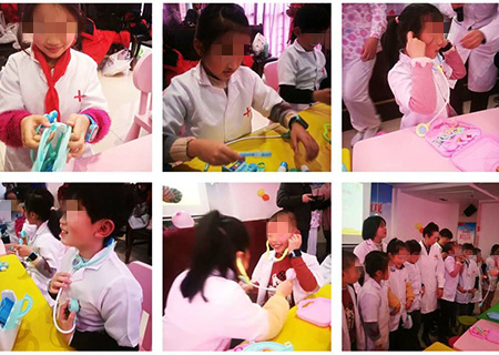 活动现场邀请到了儿科专家龙美西主任进行科普讲座,针对儿童疾病的现状、儿童常见疾病类型及病症,儿童健康应注意问题及有效解决方法等问题,并在现场与到场的孩子及家长进行沟通和交流。讲座结束后,孩子们穿上白大褂,摇身一变成小小医生,体验医生职业的神秘。在玩耍之余,学习相关健康小知识,提高健康保护意识,懂得积极预防、配合治疗的重要性。