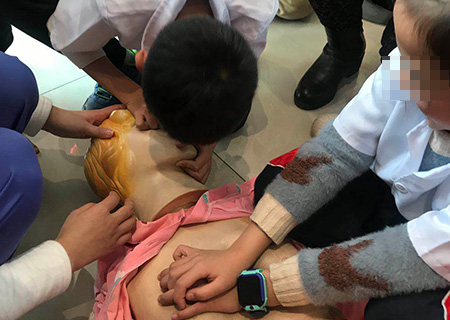在检查过程孩子们纷纷表示:“原来这个听诊器还可以听肺部有没有东西啊!我以为它就是一个听心跳的东西呢”。孩子在体验过程不断向主任提出疑问,主任也通过寓教于乐的方式向孩子们亲身解答了他们的疑惑,之后还有遇到危险情况下的一个急救处理演示哦。